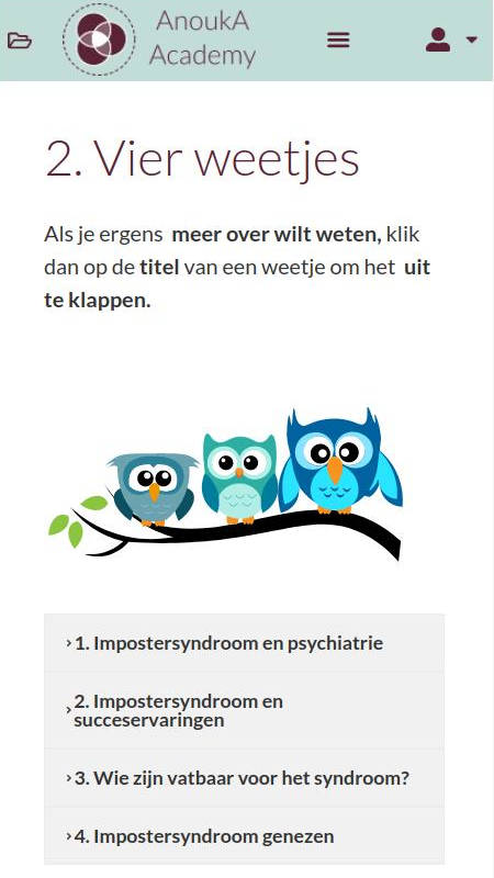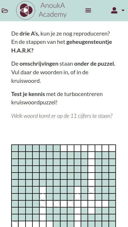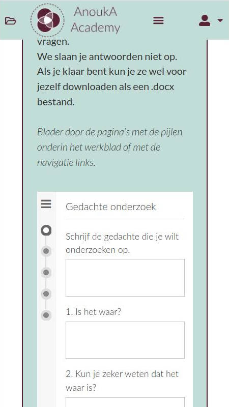 Vooral de HARK en 3 -a’s en het ophalen en toepassen van the Work waren erg nuttig. (ik vond het een beetje verwarrend dat ik vaak niet duidelijk had waar ik moest klikken als ik klaar was, icm dat het laden lang duurde waardoor ik niet wist of ik het ‘goed’; had gedaan. Kon ik denken dat ik het minder kan dan anderen – ha ha.